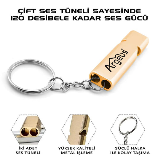 Argeus Anahtarlıklı Alüminyum Acil Durum Düdüğü Gold