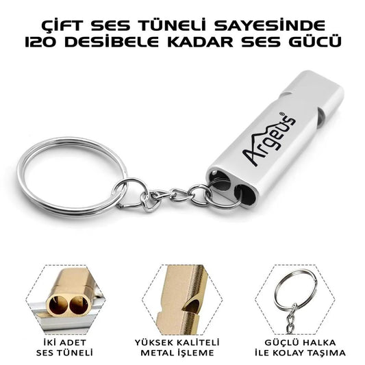 Argeus Anahtarlıklı Alüminyum Acil Durum Düdüğü Gümüş