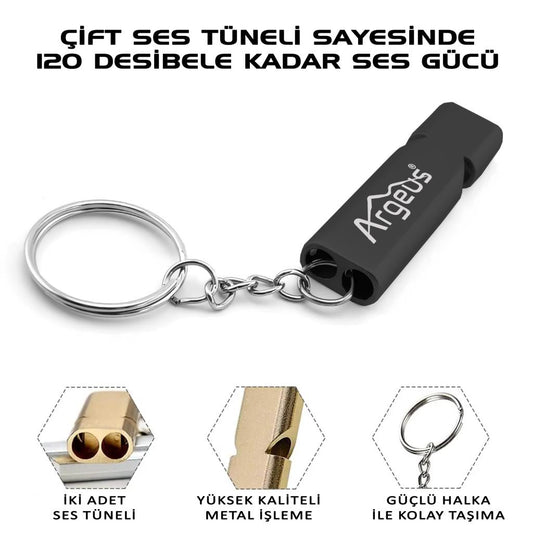 Argeus Anahtarlıklı Alüminyum Acil Durum Düdüğü Siyah