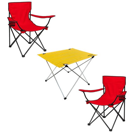 2 Adet Katlanır Kamp Sandalyesi ve Masa Seti - (DY.001) - Kırmızı/Sarı - Plaj Sandalyesi