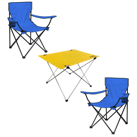 2 Adet Katlanır Kamp Sandalyesi ve Masa Seti - (DY.001) - Mavi/Sarı - Plaj Sandalyesi