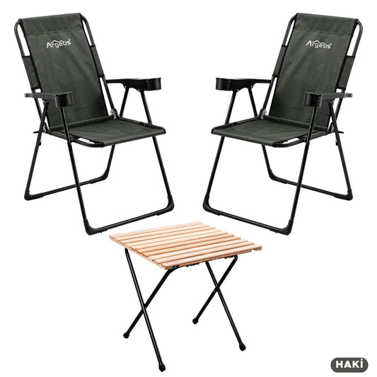 2 Adet Katlanır Kamp Sandalyesi ve Masa Seti - Rest - Taşıma Çantalı - Haki - 130 KG Taşıma