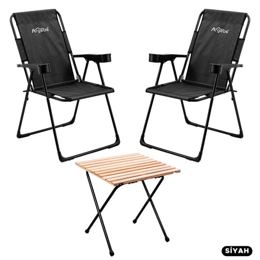 2 Adet Katlanır Kamp Sandalyesi ve Masa Seti - Rest - Siyah - 130 KG Taşıma