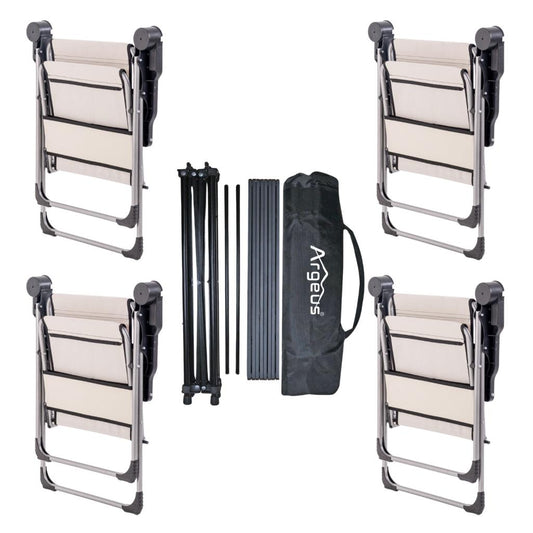 4 Adet Katlanır Kamp Sandalyesi ve Alüminyum Masa Seti - Rock Silver - Bej - Taşıma Çantalı