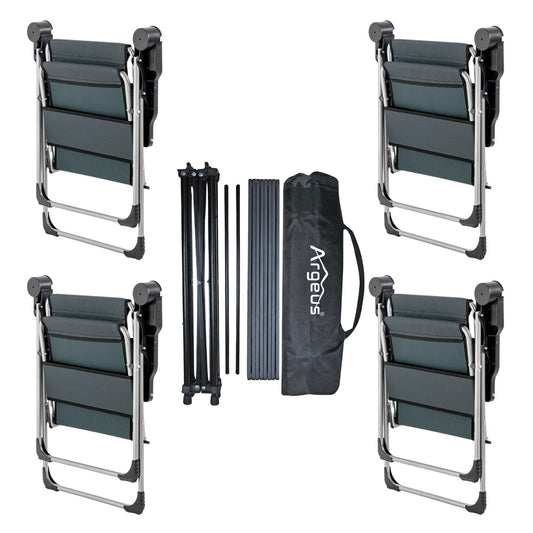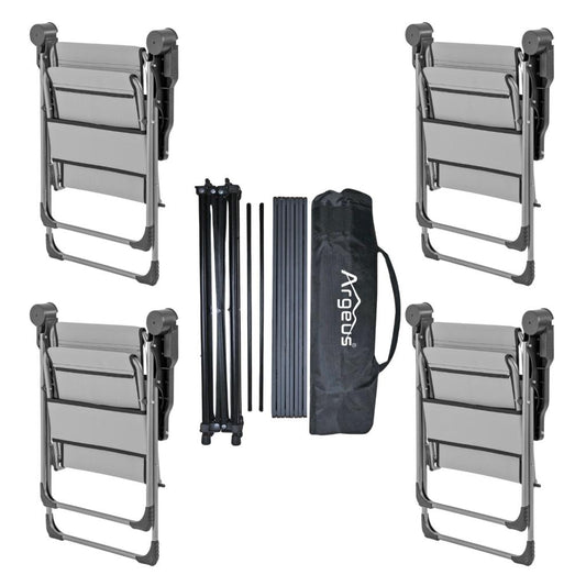 4 Adet Katlanır Kamp Sandalyesi ve Alüminyum Masa Seti - Rock Dark - Kül Gri - Taşıma Çantalı