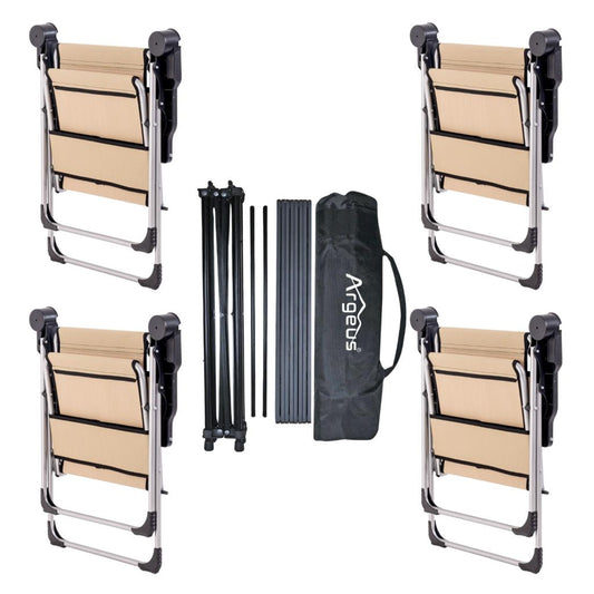 4 Adet Katlanır Kamp Sandalyesi ve Alüminyum Masa Seti - Rock Dark - Bej - Taşıma Çantalı