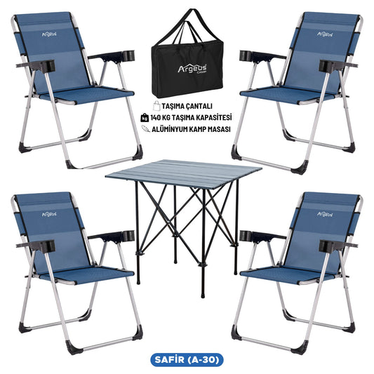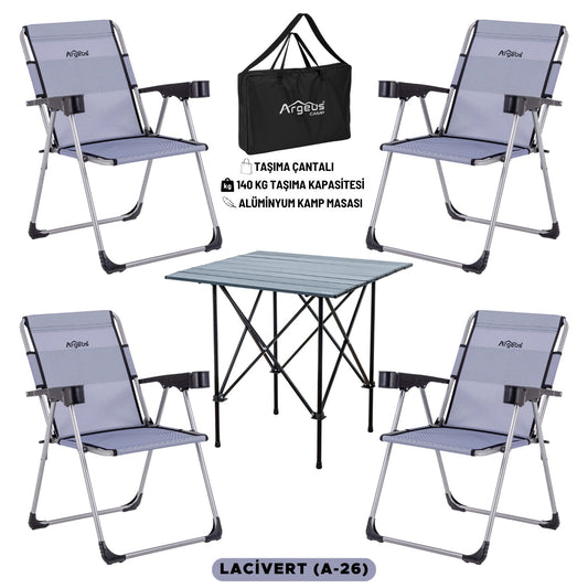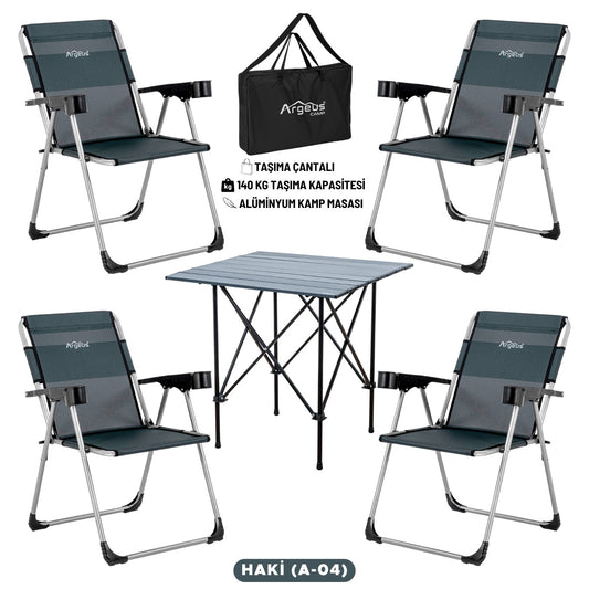 4 Adet Katlanır Kamp Sandalyesi ve Alüminyum Masa Seti - Rock Dark - Kapadokya - Taşıma Çantalı