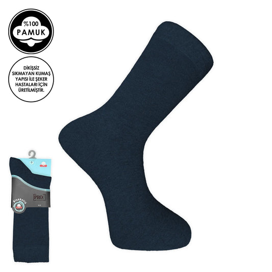 Pro Çorap Şeker (Diyabetik) Sıkmayan Pamuk Erkek Çorabı Lacivert (16408-R3)