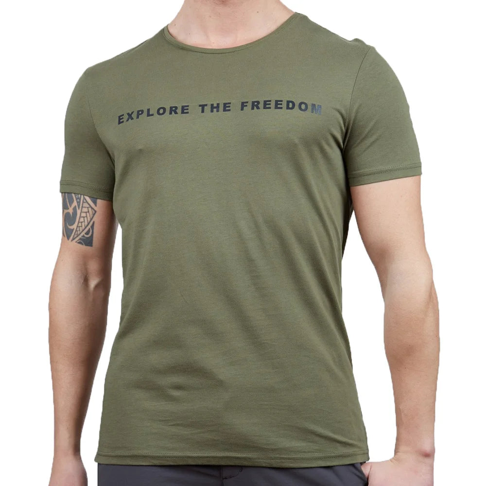 Erkek Tişört - Pamuklu Spor Tişört - Vassi - Haki