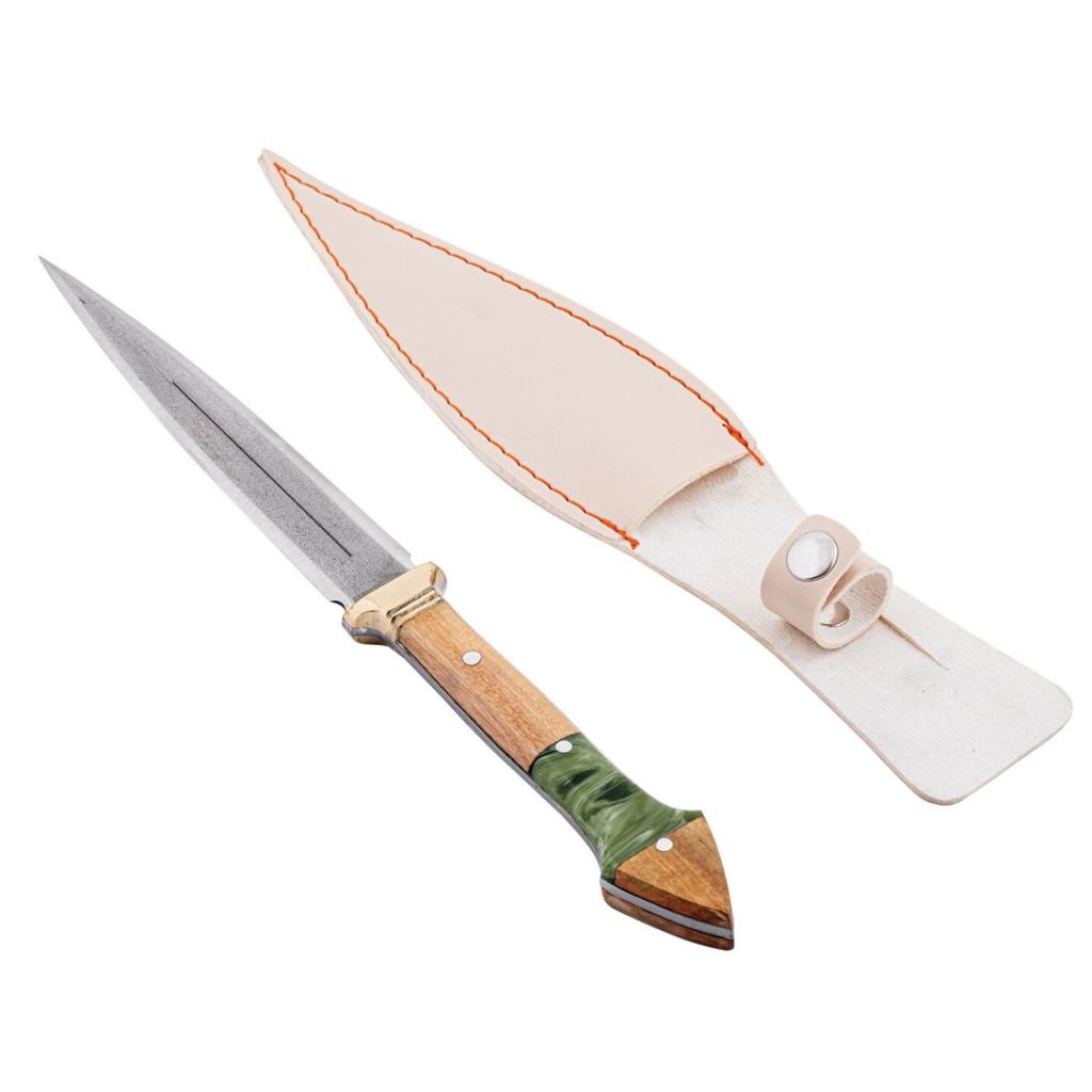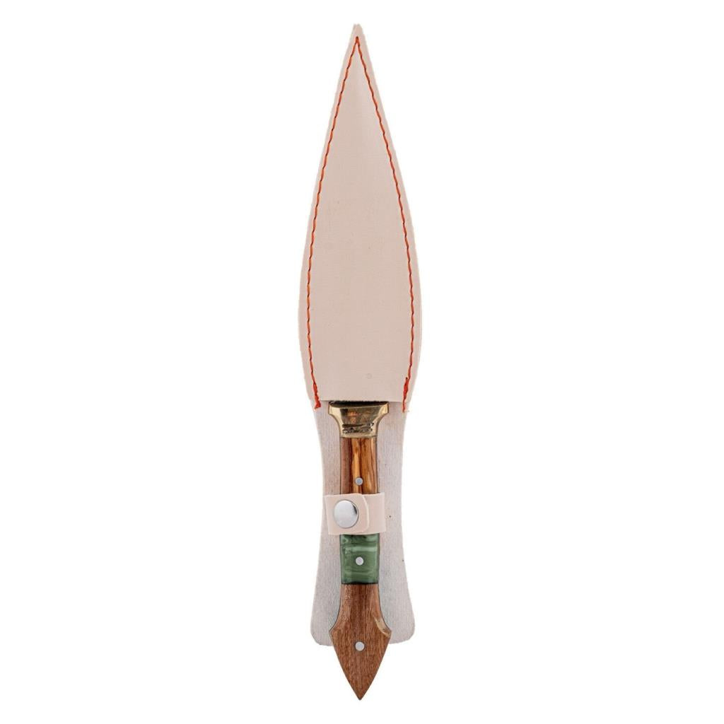 Çift Ağızlı Çerkez Bıçağı - Deri Kılıflı - Epoksi Sap - Büyük - Haki