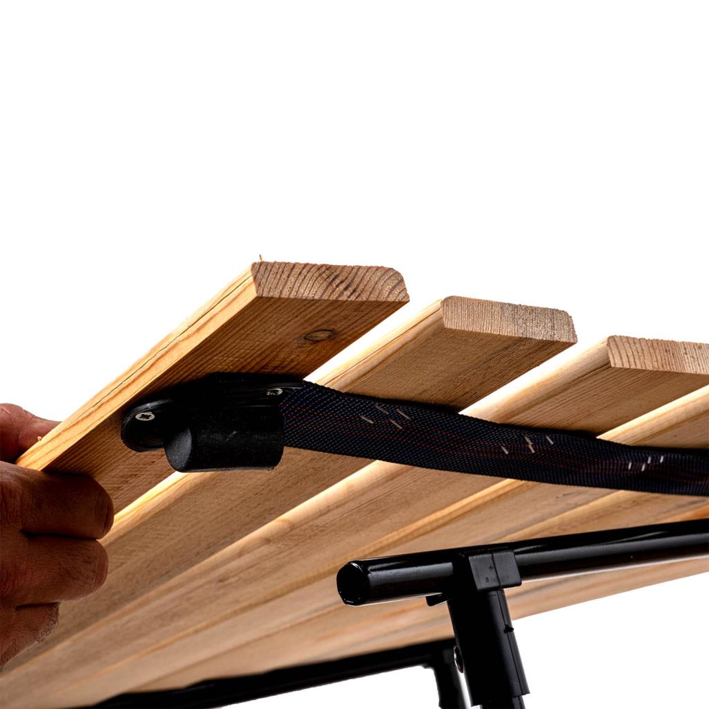 Dayanıklı yapısı ve zarif ahşap yüzeyiyle estetik bir görünüm kazandırırken, akordeon mekanizması sayesinde kolayca taşınabilir ve kurulabilir.